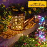 【Perfect Decoration Outdoors】The outdoor solar watering jar garden light can be hung with a shepherd hook on the porch, tree, or placed on a table or terrace, showcasing charming vintage hollow patterns. Suitable for garden decoration, outdoor decoration, courtyard decoration, terrace outdoor decoration, outdoor porch decoration.